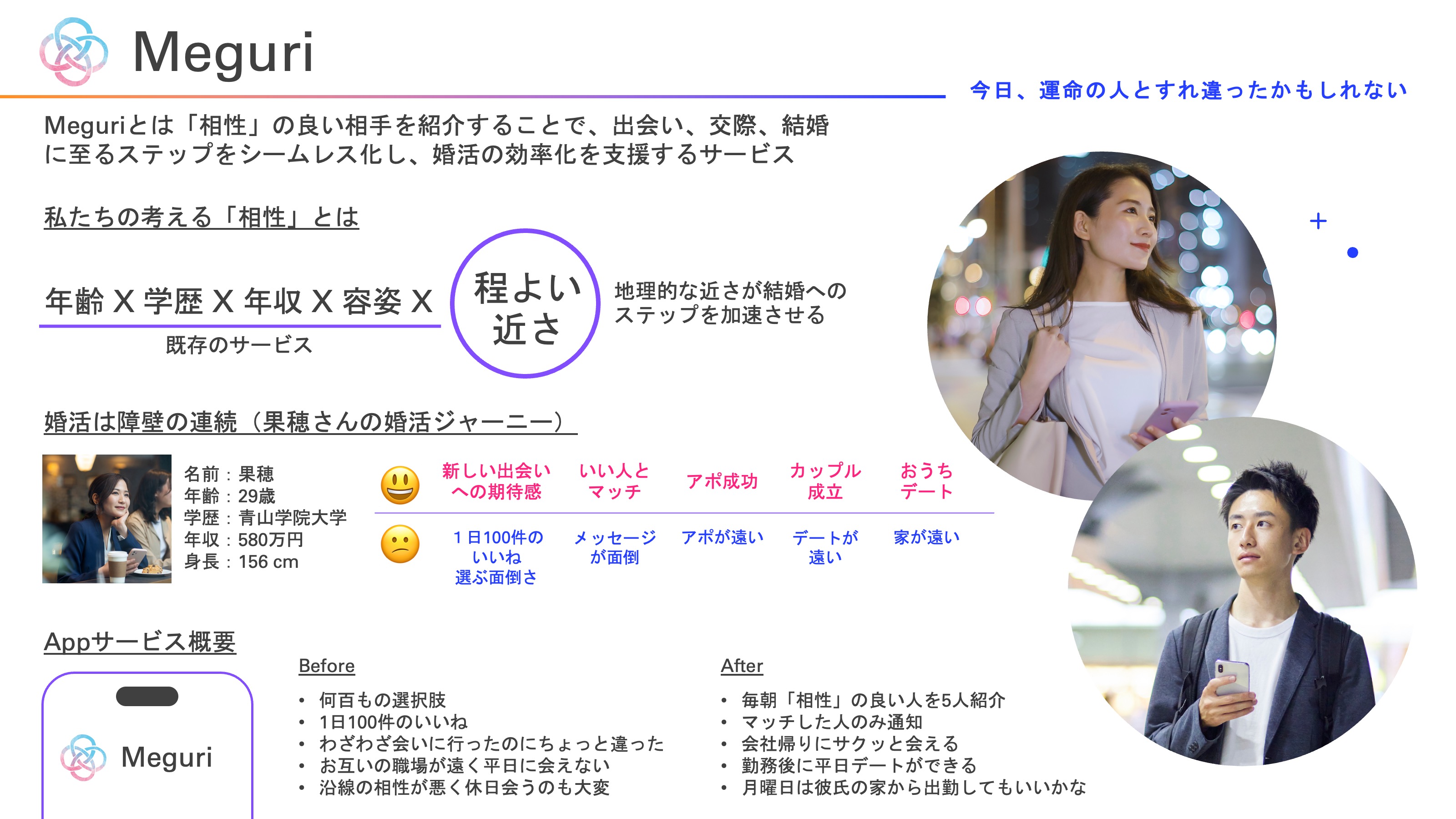 これらの障壁を解決し、出会い、交際、結婚に至るステップをシームレスに繋ぐサポートをするサービス